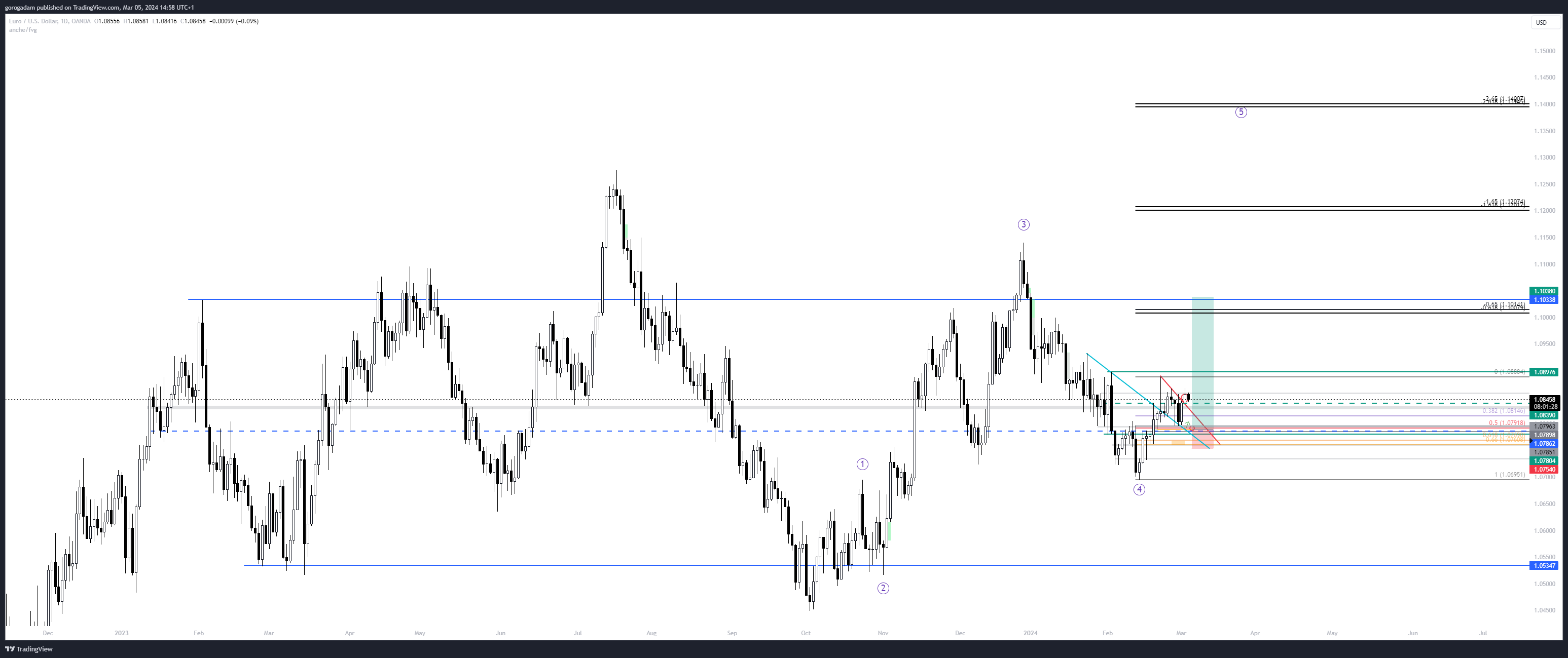 A lényeg, hogy az EURUSD-vel kapcsolatban én úgy gondolom, hogy le fog jönni az 1. kép golden pocketjának aljáig 1.07608-ig, és onnan pattan egy erőset.