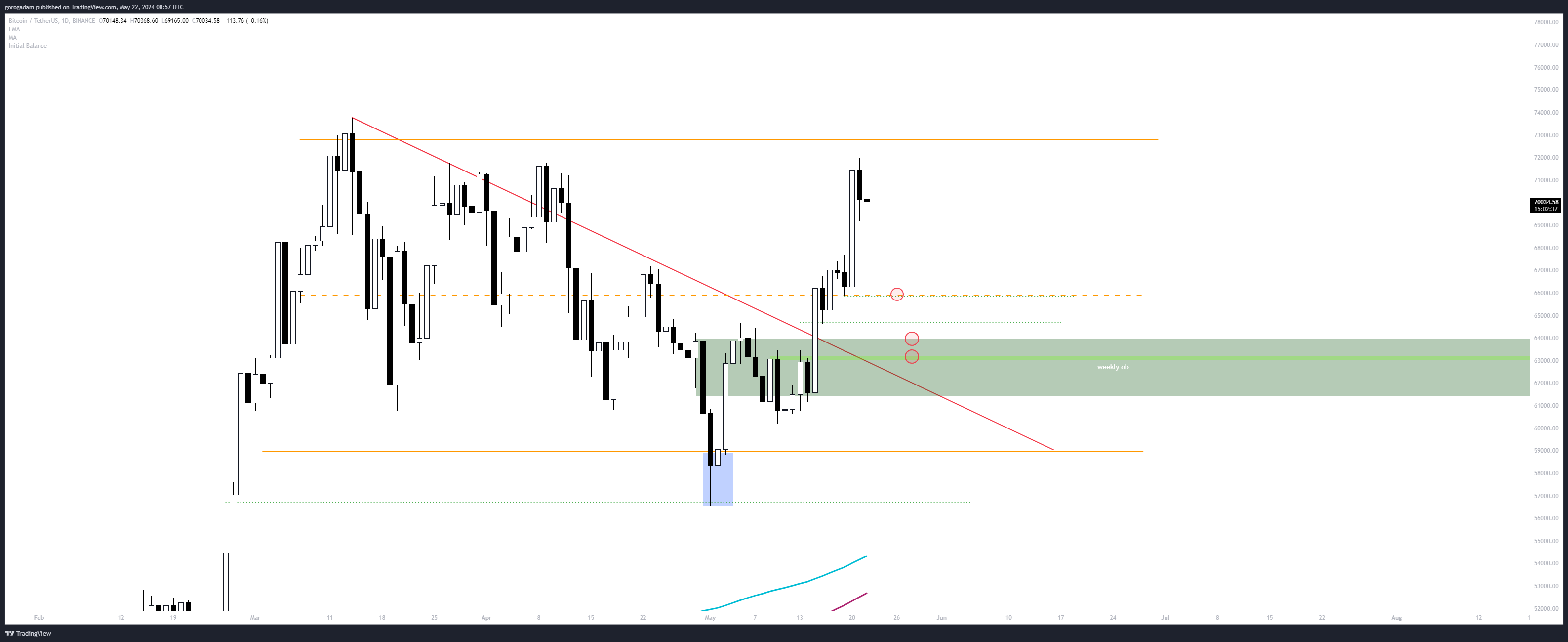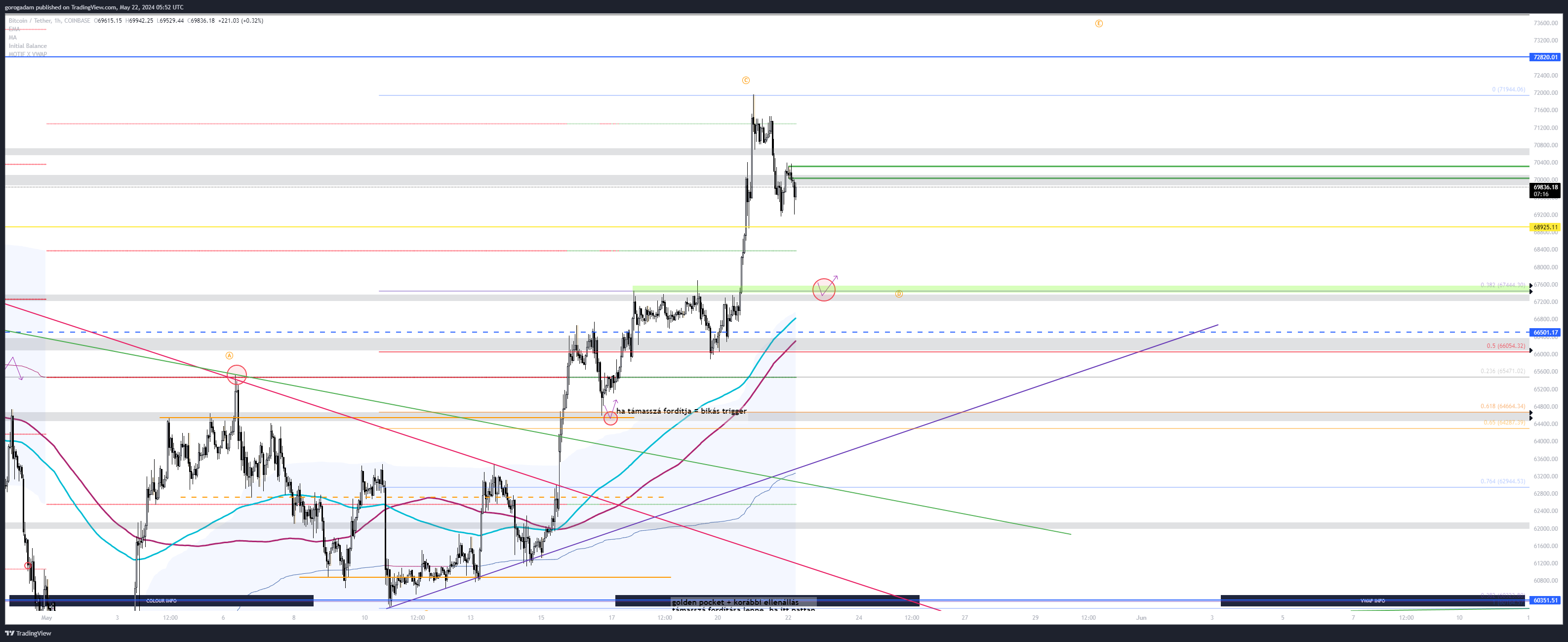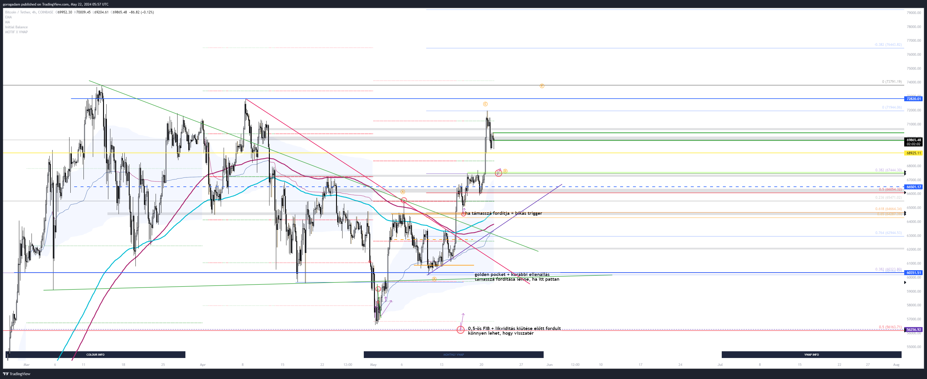 A másik érdekes szint a weekly orderblock tesztje lenne, itt számíthatunk arra, hogy sokan, akik korábban shortoltak 52-53 000-re számítva átmennek longba. Nekem ez lenne az a szint, ahol nagy összegekkel longolnék.