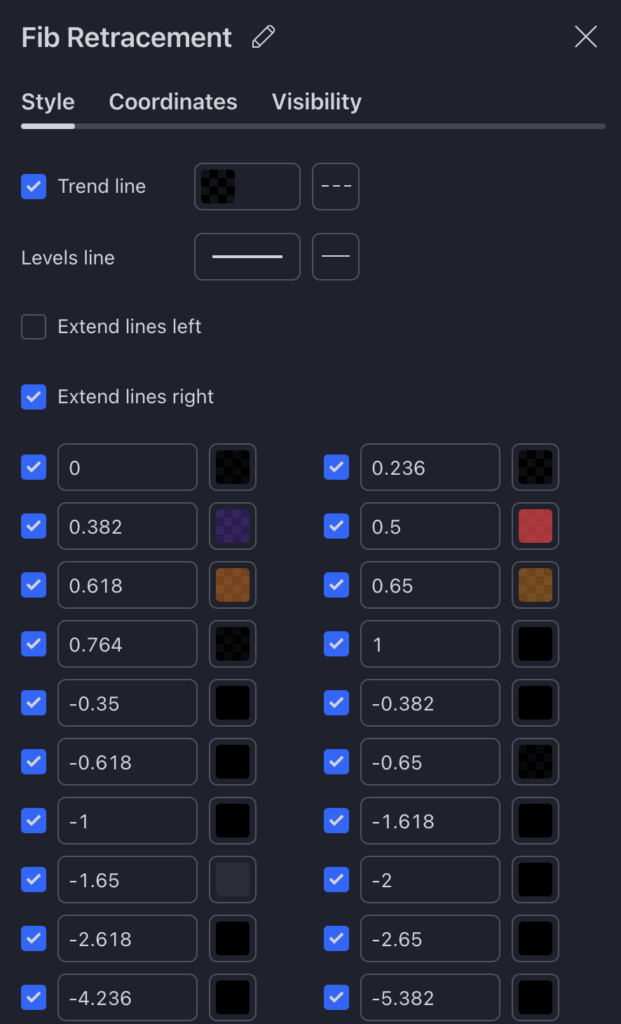 -Fibonacci szintek meghatározásával